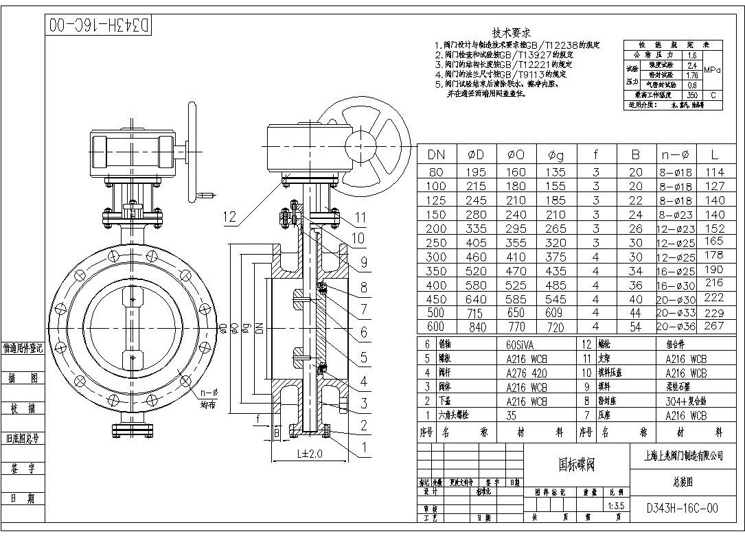 D343H多层次硬密封蝶阀系列产品,是长寿命、节能型蝶阀。其结构采用三维偏心原理设计,弹性密封和硬软多层密封兼容的加工新工艺,使蝶阀在运行工作时,减少其扭矩力,达到省力,节能之功能。从而确保整体的抗腐蚀、耐高温、抗靡损的可靠性。适用于食品、医药、石油化工、电厂、钢厂、工业环保水处理及高层建筑、供排水管道上作调节流量和截断流体最佳装置。 二、D343H 多层次硬密封蝶阀--特点 1、D343H 多层次硬密封蝶阀结构独特、型小轻便、操作灵活、省力、方便; 2、密封可靠,可达到气密封无泄漏;