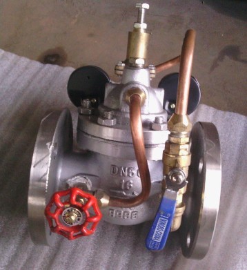 100X??馗∏蚍в芍鞣?、针阀、球阀、浮球阀、微型过滤器等组成水力控制接管系统,调定后,自动控制液面高度。本产品直接利用液面控制,不需要其它装置和能源,保养简便,液面控制准确度高,不受水压影响,密封可靠。 广泛用于高层建筑、生活区等供水管网系统的水塔、水池等设施的液面控制。