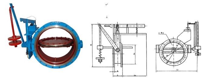 本实用新型结构简单,操作方便,工作可靠,切割速度快,密封性能好。 密封圈一般采用耐油橡胶,也可以提供PTFE密封圈的特殊产品。 二,DMF-0.1C-500煤气 紧急切断阀 - 技术规格 1。电磁铁一般按AC 220V供电,容量约为220VA(出厂时也可按要求提供) 2。阀门的标称压力为PN0.1MPA。 3。蝶阀的相关尺寸如表1所示(法兰与JB81-59一致)。 4,切断时间:1秒 5。介质温度:-20~180°C。环境温度:-20~60°C , DN | D1 | D | D2 | L | L1 | L2 | H | B | n-φd | 100 | 170 | 205 | 145 | 127 | 360 | 250 | 460 | 10 | 4-12 | 150 | 225 | 260 | 200 | 140 | 510 | 250 | 510 | 14 | 8-18 | 200 | 280 | 315 | 252 | 152 | 465 | 250 | 565 | 14 | 8-18 | 250 | 335 | 370 | 310 | 165 | 520 | 280 | 620 | 16 | 12-18 | 300 | 395 | 435 | 362 | 178 | 580 | 300 | 670 | 16 | 12-23 | 350 | 445 | 485 | 412 | 190 | 630 | 300 | 720 | 16 | 12-23 | 400 | 495 | 535 | 162 | 216 | 680 | 300 | 770 | 20 | 16-23 | 450 | 550 | 590 | 518 | 222 | 740 | 300 | 820 | 20 | 16-23 | 500 | 600 | 640 | 570 | 229 | 780 | 300 | 860 | 22 | 16-23 | 600 | 705 | 755 | 670 | 267 | 895 | 320 | 960 | 22 | 20-25 | 700 | 810 | 860 | 775 | 292 | 1010 | 400 | 1060 | 22 | 24-25 | 800 | 920 | 975 | 880 | 318 | 1125 | 400 | 1150 | 22 | 24-30 | 900 | 1020 | 1075 | 980 | 330 | 1225 | 400 | 1250 | 24 | 24-30 | 1000 | 1120 | 1175 | 1080 | 410 | 1345 | 500 | 1360 | 24 | 28-30 | 1200 | 1340 | 1400 | 1295 | 470 | 1525 | 500 | 1500 | 24 | 32-34 | 1400 | 1560 | 1620 | 1510 | 530 | 1775 | 500 | 1800 | 24 | 36-34 | 1600 | 1760 | 1820 | 1710 | 600 | 1990 | 700 | 2100 | 24 | 40-41 | 1800 | 1970 | 2045 | 1970 | 670 | 2190 | 700 | 2350 | 24 | 40-41 | 2000 | 2180 | 2265 | 2110 | 760 | 2390 | 700 | 2600 | 24 | 48-48 |