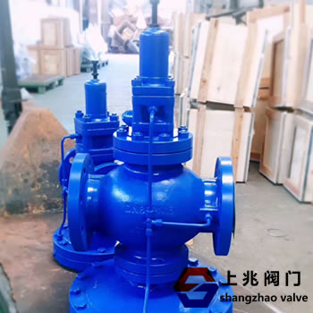 减压阀按结构形式可分为薄膜式、弹簧薄膜式、活塞式、杠杆式和波纹管式;按阀座数目可人为单座式和双座式;按阀瓣的位置不同可分为正作用式和反作用式。 直接作用薄膜式减压阀工作原理:出口侧压力增加,薄膜向上运动,阀开度减小,流速增加,压降则增大,阀后压力减小,出口侧压下降。薄膜向下运动,阀开度增大,流速减小,压降减少,阀后压增大。阀后的出口压力始终保持由整定调节螺钉整定的恒压 . 紧急切断阀直接作用波纹管式减压阀工作原理: 出口侧压力增加,波纹管向上运动,阀开度减小,流速增加,压降则该拿大,阀后压力减小,出口侧压下降。波纹管向下运动,阀开度增大,流速减小,压降减少,阀后压增大。阀后的出口压力始终保持由整定调节螺钉整定的恒压 先导活塞式减压阀/先导波纹管式减压阀工作原理: 拧动调节螺钉,顶开导阀阀瓣,介质从进口侧进入活塞上方,由于活塞面积大于主阀瓣面积,推动活塞向下移动,使主阀打开,有阀后压力平衡调节弹簧的压力改变导阀的开度,从而改变活塞上方的压力,控制主阀瓣的开度,使阀后的压力保持恒定