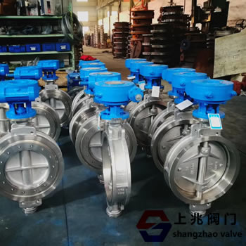 蜗轮蝶阀的蝶板安装于管道的直径方向。在蝶阀阀体圆柱形通道内,圆盘形蝶板绕着轴线旋转,旋转角度为0°~90°之间,旋转到90°时,阀门则为全开状态。 应用于化工、建材、电站、玻璃等行业中的通风、环保工程的含尘冷风或热风气体管道中,作为气体介质调节流量或切断的管道控制装置。本类阀门在管道中一般应当水平安装。 五、产品的主要零件材料: | 名称 | 材料 | | 阀体 | 铸钢、不锈钢、铬钼钢 | | 蝶板 | 铸钢、化合金钢(镀硬铬)不锈钢、铬钼钢 | | 阀杆 | 2Cr13、1Cr13不锈钢、铬钼钢 | | 密封圈 | 不锈钢、聚内脂、抗磨材料、氟塑料 | | 填料 | 柔性石墨 |