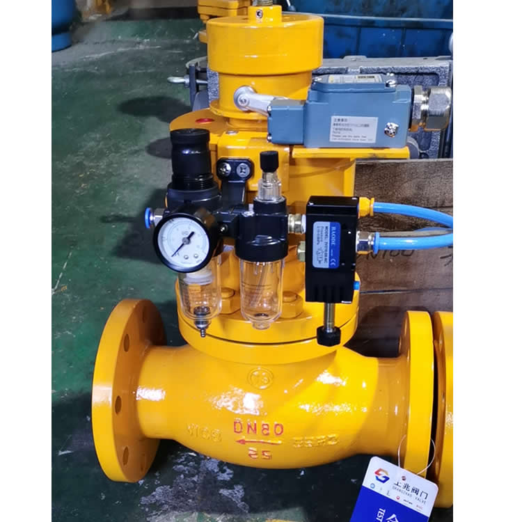 氨气紧急切断阀(气动紧急切断阀)由多弹簧气动薄膜执行机构或浮动式活塞执行机构与调节阀组成,接收调节仪表的信号,控制工艺管道内流体的切断、接通或切换。具有结构简单,反应灵敏,动作可靠等特点。 可广泛地应用在石油、化工、冶金等工业生产部门。紧急切断阀的气源要求经过滤的(压缩空气)氮气。