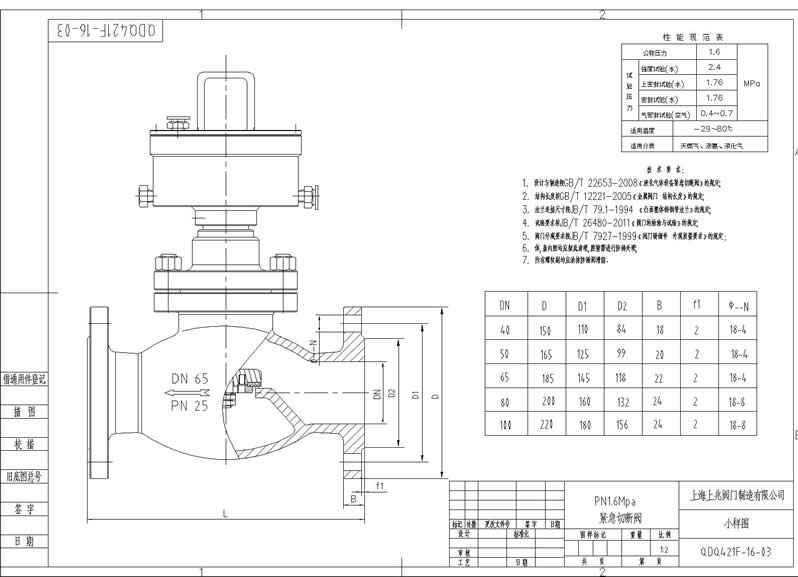 气动紧急切断阀小样图