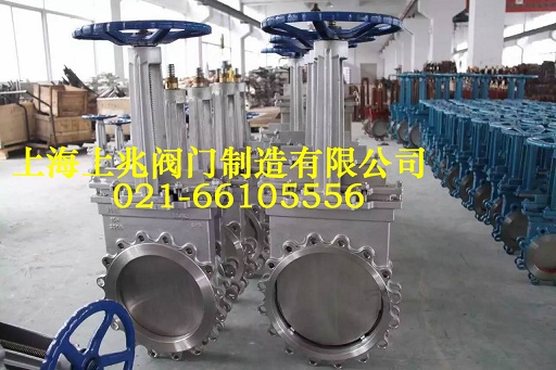 刀闸阀又称刀型闸阀、刀门闸阀、浆液阀、泥浆阀,它的启闭件是闸板,闸板的运动方向与流体方向相垂直,靠可以切割纤维材料的刀刃形闸板来切断介质,闸板有两个密封面,最常用的模式闸板阀的两个密封面形成楔形、楔形角随阀门参数而异,通常为50,楔式刀型闸阀的闸板可以做成一个整体,叫做刚性闸板;也可以做成能产生微量变形的闸板,以改善其工艺性,弥补密封面角度在加工过程中产生的偏差,这种闸板叫做弹性闸板。阀体实际上不存在腔室,闸板在侧面导向槽内升降,并由底部的凸耳紧压在阀座上,如需达到较高的介质密封性时,可选用O形密封阀座实现双向密封。刀闸阀具有较小的安装空间,工作压力低,不易堆积杂物,价格较低。上兆阀门刀闸阀适用于浆液、污水、粉尘等介质的管路上做截流使用。
