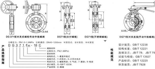 三、D371F46 蜗轮对夹式衬氟蝶阀--主要外形和连接尺寸