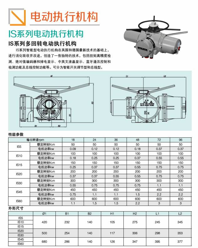 IS多回转电动执行机构,智能电动执行器,智能带??氐缍葱衅?/td>