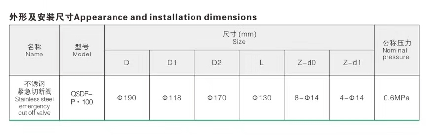 产品介绍 不锈钢气动海底阀:又称内置安全停止底阀,紧急切断阀,是安装在金属大气罐体内的安全阀,是液体危险品罐式车辆的装卸口。阀门靠近水箱的根部,不用于其他用途。它在没有装载和卸载时关闭。压力平衡海床用于多储油罐车,可用于不同油罐的单独装卸。三向设计旨在减少负载,操作简单,安全可靠。 不锈钢气动海底阀--产品介绍: QSDF-P不锈钢气动海底阀安装在燃料卡车油箱的底部。它可以加载和加油。阀门内压小,流量大,阀体法兰有切槽。当油箱意外时,不能携带破裂的槽。冲击力大时,主体管道和水箱将自动断开,自动定心柱塞和耐用弹簧将保持密封,水箱中的介质不会泄漏,从而确保水箱的安全。当没有空气源或其他原因时,可以手动折叠和打开气缸活塞螺钉。 气动海底阀主要由壳体,密封机构,传动机构,油箱连接法兰和出口法兰组成。密封机构延伸到罐体内部,轴向自密封通过不锈钢弹簧力进行,使得海底阀处于常??闭状态,并且通过传动机构执行打开和关闭操作??歉狭巡劭捎行粘盗驹诠艿莱寤飨麓莸哪芰?,阀体从断裂槽中断裂,使油箱与管道分离,从而保证密封机构的完整性,避免物料泄漏,并大大提高了运输的安全性。它被许多国际和国内石油公司,化学液体危险品运输和其他企业使用。 目前,QSDF-P气动海底阀的操作控制方法主要包括手动和气动;主要材料主要有铝合金和不锈钢; 不锈钢气动海底阀--技术参数 口径:DN80,DN100或3“,4” 工作压力0.6MPa 最大流量250 / min 主体材料铝合金 打开模式手动(S),气动(Q) QSDF-P不锈钢气动海底阀是回收在装载和卸载油期间产生的油和气的装置。它可以直接安装在加油车的油箱顶部或人孔盖上。它可以通过水箱底部的推杆和海底阀门。打开机械联动装置,也可以控制空气源的打开和关闭。 气动海底阀可以在装载和卸载到储油区的油箱期间回收由油的挥发产生的所有油气,避免油气泄漏,并通过其他油气回收装置。石油和天然气经过浓缩和再利用,以实现节能和环保。 不锈钢气动海底阀的功能和特点: 1.当油罐车罐装满后,油气回收阀打开,上升的液位推高油气,通过一系列油气回收系统返回油库区的油箱。。 2.当油轮卸油时,回收阀允许回收的气体进入油罐。 在没有油气回收设施的系统中,允许空气进入油轮箱。 3,密封性高,确保油罐车运输安全。 4.合理的阀体设计确保了高效的油气回收。 ![]() | ||