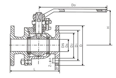五、Q41F-16铸铁球阀--外形尺寸和连接尺寸