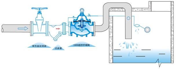 100X??馗∏蚍?/a>由主阀、针阀、球阀、浮球阀、微型过滤器等组成水力控制接管系统,调定后,自动控制液面高度。本产品直接利用液面控制,不需要其它装置和能源,保养简便,液面控制准确度高,不受水压影响,密封可靠。 广泛用于高层建筑、生活区等供水管网系统的水塔、水池等设施的液面控制。